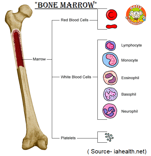 The bone marrow is extremely important to the immune system because all the body's blood cells (including T and B lymphocytes) originate in the bone marrow. B lymphocytes remain in the marrow to mature, while T lymphocytes travel to the thymus. (Credit- aboutkidshealth.ca)
